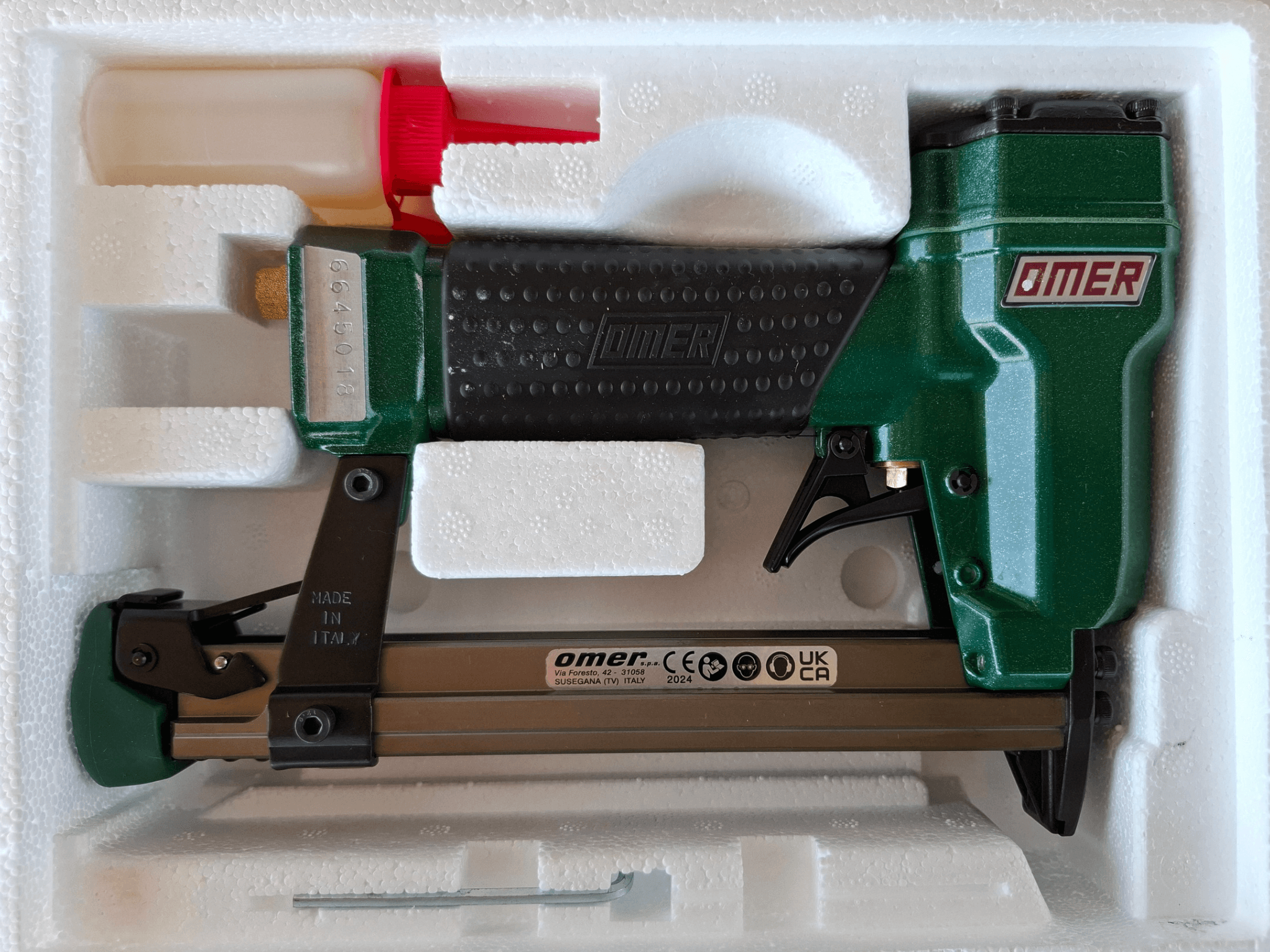 Acest capsator pneumatic pentru tapiterie Omer 80.16 BH este construit din componente metalice de înaltă calitate, asigurând durabilitate și fiabilitate.