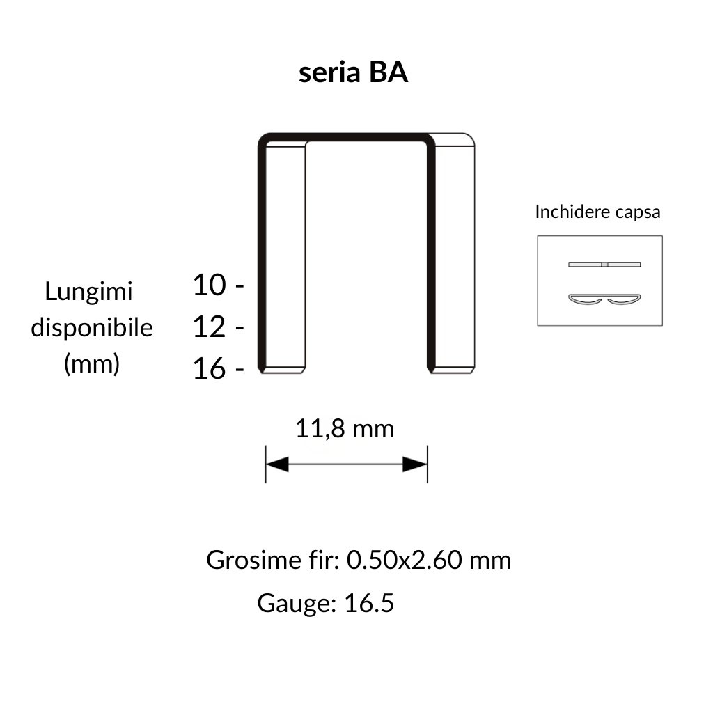 Aceste capse metalice pentru ambalaje carton seria BA sunt fabricate din sarma de calitate, ceea ce asigura o fixare durabila si rezistenta.