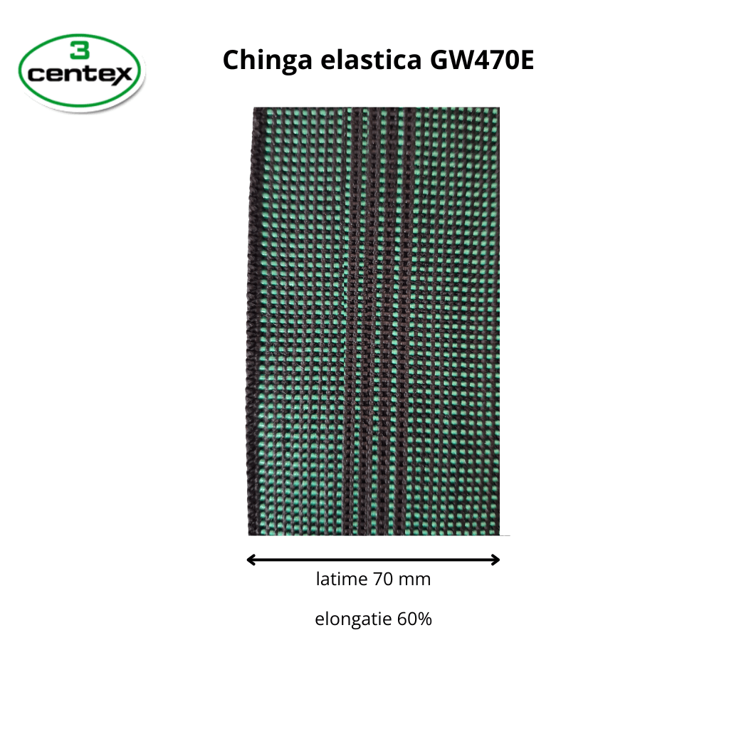 Chinga elastica pentru tapiterie GW470E, elasticitate de 60% si latime de 70mm, este un produs esential pentru fabricarea scaunelor, fotoliilor si canapelelor.