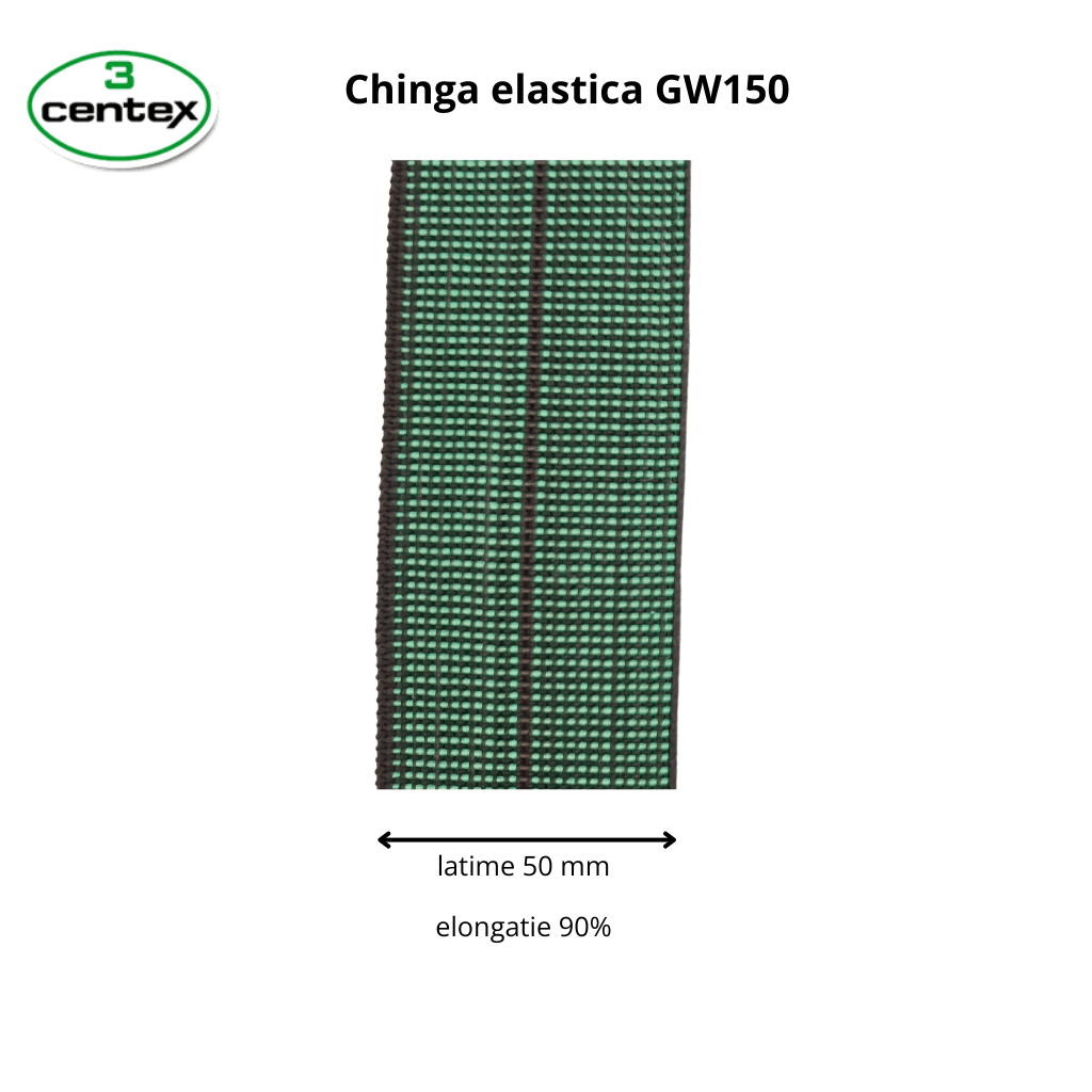 Chinga elastica pentru tapiterie GW150, elasticitate de 90% si latime de 50mm, este un produs esential pentru fabricarea scaunelor, fotoliilor si canapelelor.