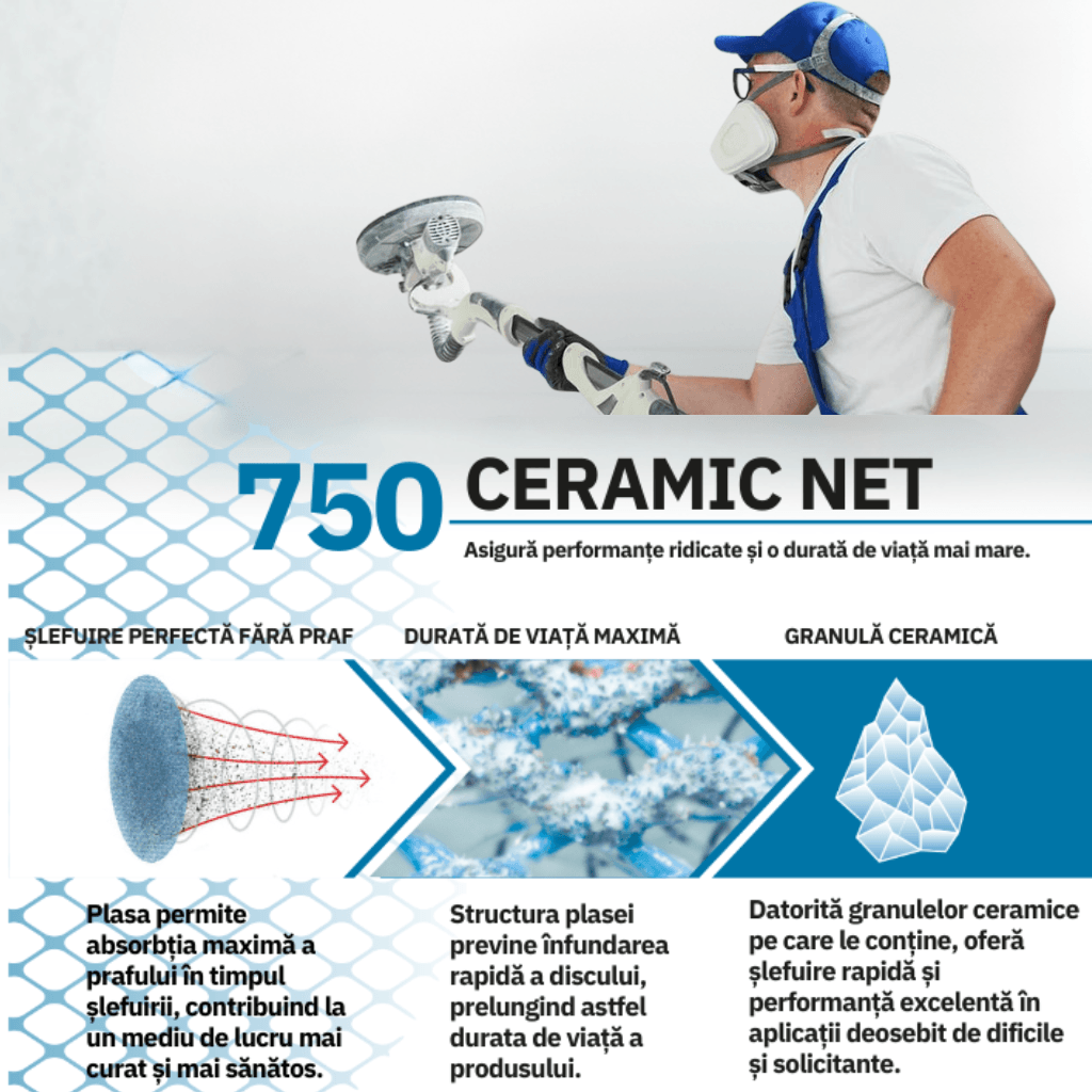 Structura inovatoare tip plasa (net) reduce la minimum colmatarea si permite o slefuire fara praf, asigurand astfel un mediu de lucru mai curat si mai sanatos.