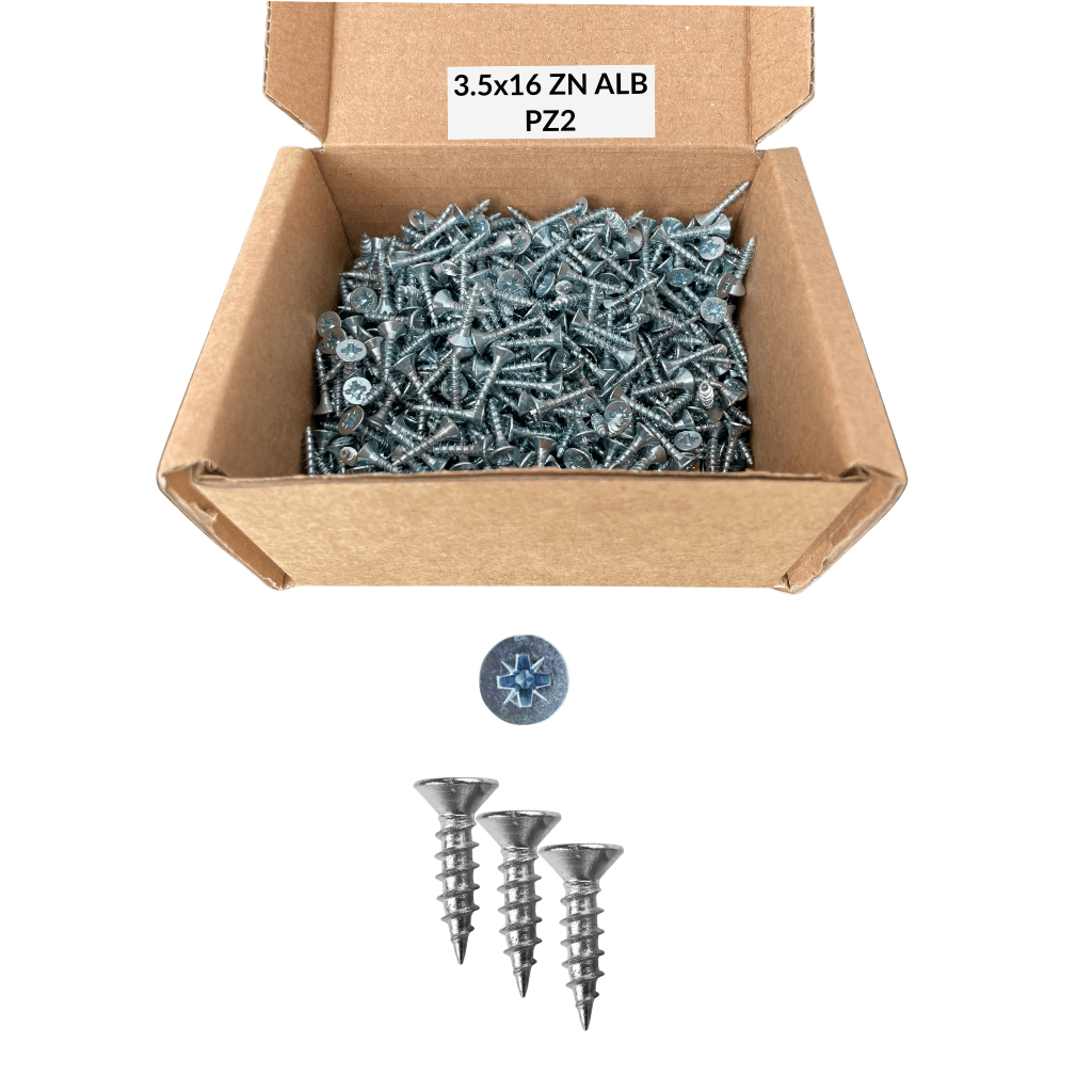 Suruburile 3.5×16 mm DIN 7505A, cu cap inecat, sunt special concepute pentru a asigura o fixare sigura si durabila in PAL, MDF, lemn, placaje si alte materiale.